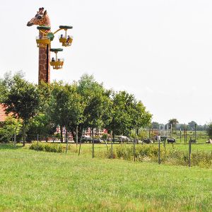 Bei der Fahrt in 16 Meter Höhe dreht sich nicht nur die Giraffe um ihre Achse, sondern zusätzlich auch die Gondeln in drei verschiedenen Ebenen. Da dies jedoch sehr gemächlich passiert, ist ein wunderschöner Rundblick über die Afrika-Anlage zu Giraffen, Zebras und Straußen sowie den gesamten Park garantiert. Knapp ½ Mio. Euro investierte Fam. Ludewigt in diese weltweit einzigartige Neuheit, denn im Erscheinungsbild „Hungrige Giraffe“ kann man dieses „Flying Wheel“ (Turmfahrgeschäft) nur im Jaderpark erleben. Jetzt bemühen wir uns um einen Eintrag ins Guinnessbuch der Rekorde für die längste Giraffe der Welt.