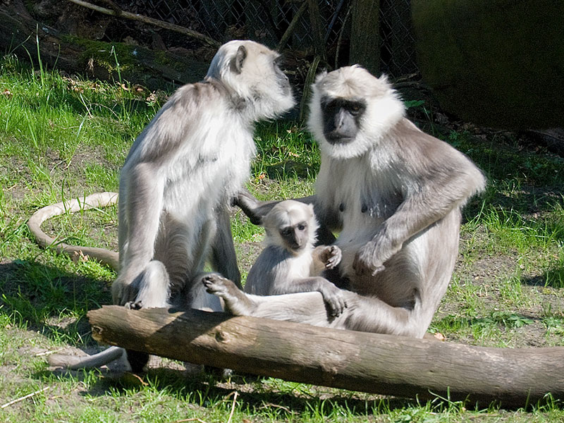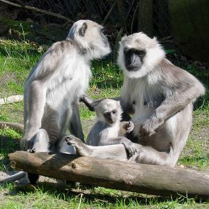 Hanumans leben in Haremsfamilien mit strenger Rangordnung zusammen. Im Tiergarten muss bei der Pflege natürlich gut darauf geachtet werden, dass die Futterplätze so angelegt sind, dass auch rangniedere Tiere ihre Malzeit bekommen. Bei uns leben 3 Weibchen mit einem Männchen zusammen. Auch hier ist es möglich durch große Scheiben in den Innenraum zu schauen.
