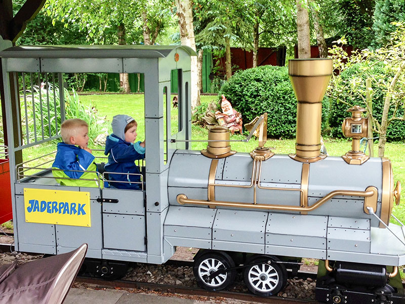 Eisenbahn fahren alle Kinder gern. Darum fährt neben dem großen Jade-Express um unsere Afrikaanlage auch noch diese kleine Kinder-Eisenbahn unermüdlich Runde um Runde. Während die Jüngsten hier Lokomotivführer spielen können, sitzen die Eltern auf einer Bank im Bahnhof.
