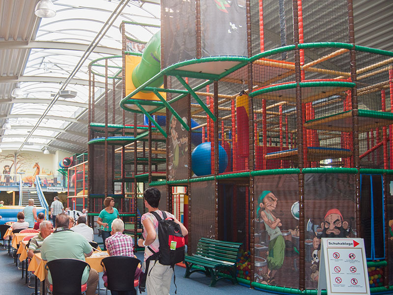 Der Clou dabei ist, dass unterwegs jede Menge Hindernisse zu überwinden sind und sportliche Extras das Durchspielen der Anlage zum Erlebnis machen. Die Kletteranlage wurde nach modernsten Gesichtspunkten gebaut, mit allen Sicherheitsstandards ausgerüstet und unterliegt einer regelmäßigen Kontrolle. So können Eltern ihre Kinder problemlos und mit ruhigem Gewissen spielen lassen und dem Treiben von den zahlreichen Sitzplätzen folgen. Sie dürfen sich aber gern mit sportlich betätigen.