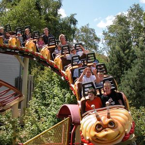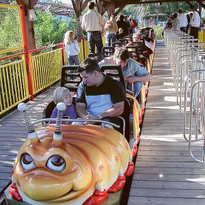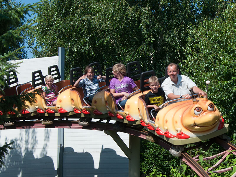 Die Jaderberger Holzwurm-Achterbahn ist zwar nicht extrem hoch und hat auch keine Loopings, aber das erwartet auch niemand. Hier dürfen Kinder schon ab 4 Jahre in Begleitung Erwachsener mitfahren. Der Jaderpark möchte, dass gerade Familien mit Kindern richtig Spaß haben. Keiner soll draussen bleiben, weil ein Karussell zu hoch und zu schnell ist. Und wenn es doch ein bisschen schneller sein soll, steigt hinten ein.
