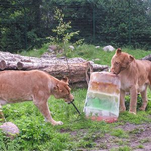 Ende des Jahres 2011 wurde das Löwenhaus komplett saniert, in das die Tiere dann Anfang 2012 einziehen konnten. Jetzt gibt es mehr Platz im Innenraum, Fußbodenheizung und modernisierte Sicherheitsanlagen. Obwohl die Tiere auch im Winter die Freianlage nutzen, sind sie nun durch große Fenster auch im Haus zu beobachten.