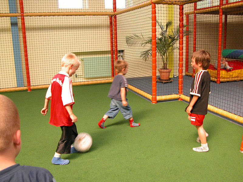 An dieser Stelle sind natürlich gern die Jungs aktiv, wobei jedes Mädchen gern mitmachen darf. Oft sind auch die Väter mit von der Partie, denn wenn der Ball rollt, kann keiner still sitzen bleiben. Kleine Gruppen, richtige Mannschaften alles ist auf dem Ballspielfeld in der Spielscheune möglich.