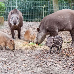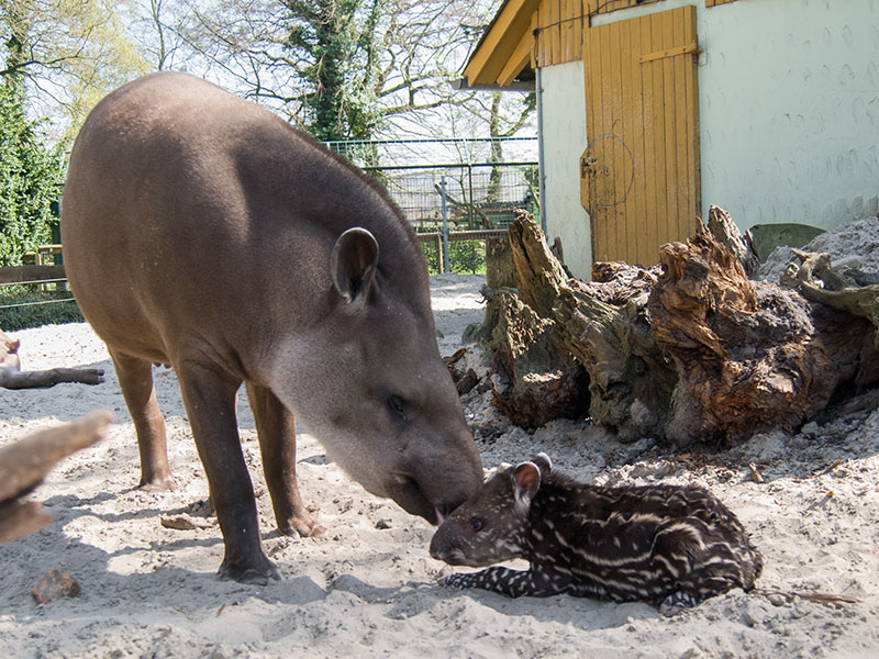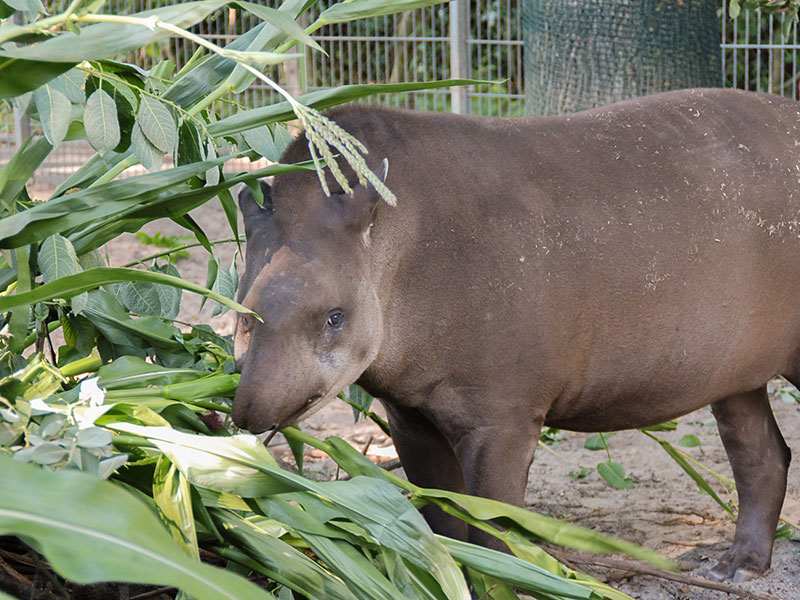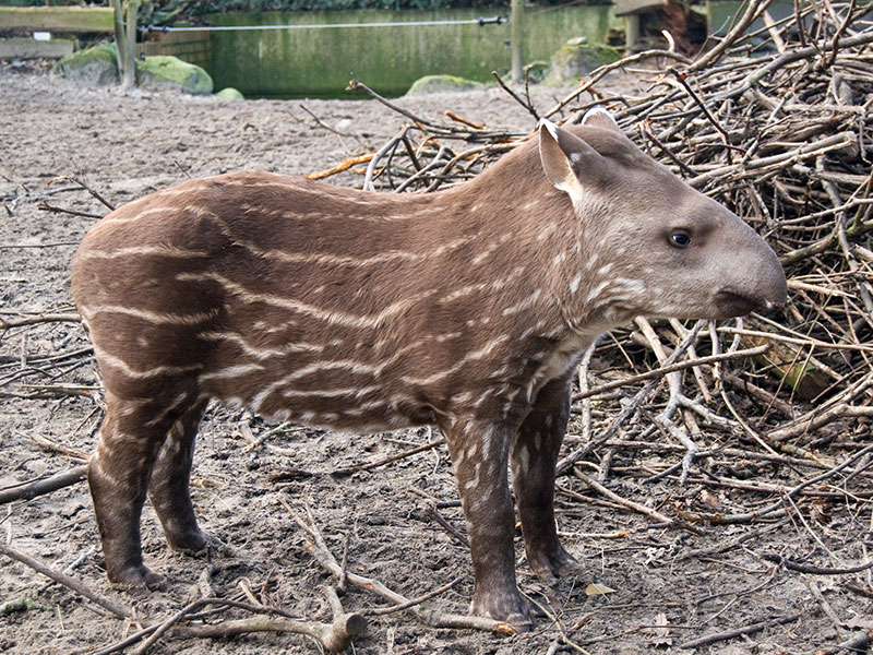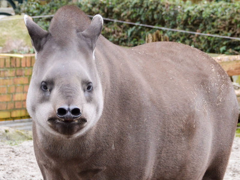 Auf den ersten Blick kann man Flachland-Tapire sicher schwer einordnen. Wir wissen heute, dass sie verwandtschaftlich den Nashörnern recht nahe stehen. Was man ihnen sicher nicht ansieht: Tapire sind ausgezeichnete Schwimmer, die selbst große Flüsse überqueren. Ihr eigentlicher Lebensraum ist der Urwald. Dort wo es schön sumpfig ist, fühlen sie sich am wohlsten. So finden wir den Flachland-Tapir in den dichten Wäldern rund um den Amazonas.