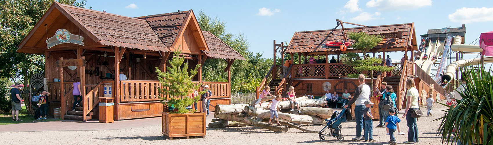 Im Freizeitpark geht es so richtig turbulent zu. Auf einer Fläche von 1,5 Hektar erwarten euch eine Vielzahl verschiedener Fahrattraktionen, Kinderkarussells, Sportgeräte, Spielanlagen und lustige elektronische Theater. in den letzten Jahren wurde auf einem großen Erweiterungsgelände von 12 Hektar für noch mehr Vergnügen gesorgt. Ein großer Giraffenturm bietet hier einen fantastischen Rundblick. Ein besonderes Highlight ist das kürzlich entstandene "Kanadische Holzfällercamp" mit riesiger Schlauchbootrutsche und Goldwaschanlage.