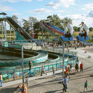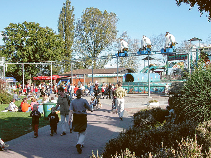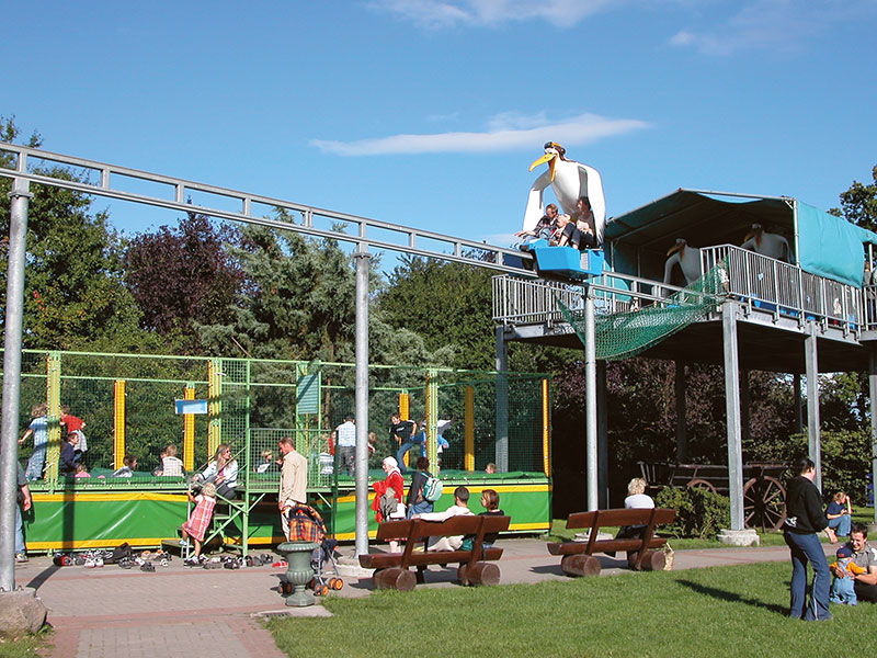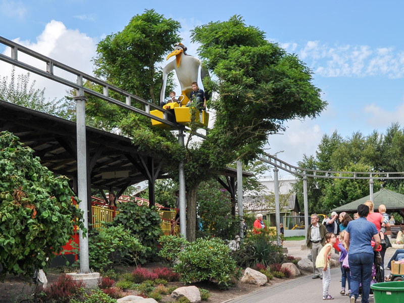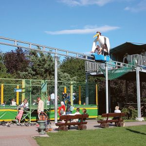 Bei unserer Selbstfahr-Hochbahn "Albatros" heißt es sportlich trampeln. 250 Meter ist die Strecke lang, die jede Gondel mit Muskelkraft bewegt werden will. Das Prinzip ist wie beim Fahrrad oder Tretboot. Pedale sorgen für die Fortbewegung, also ein echtes Sportgerät. Zur Belohnung gibt es eine tolle Aussicht über den Freizeitpark.
