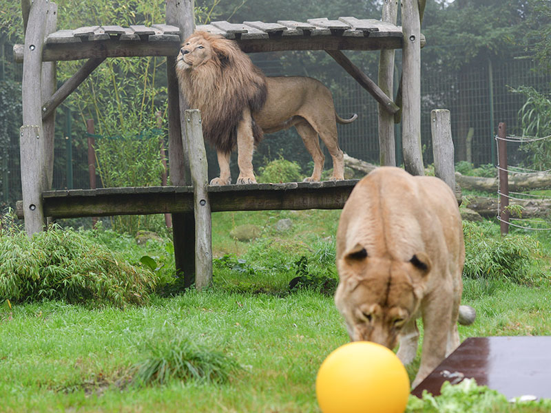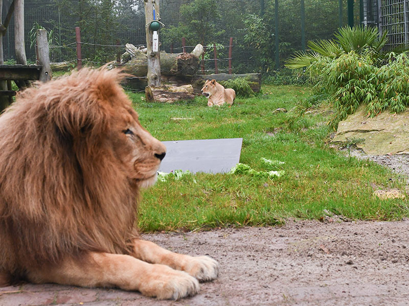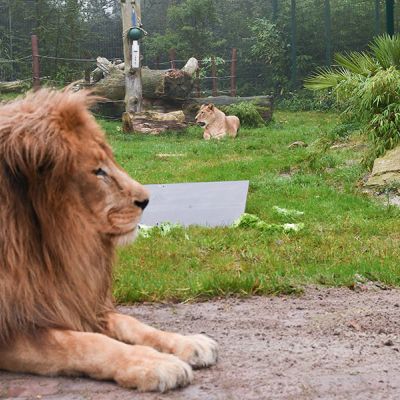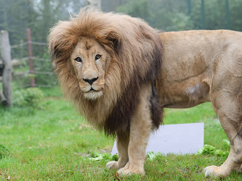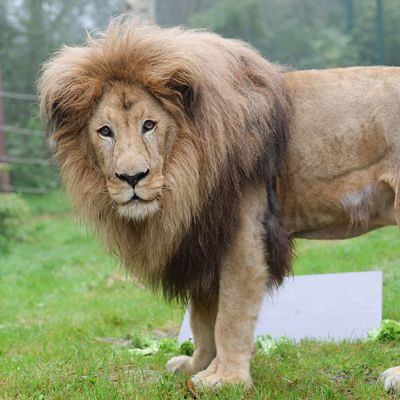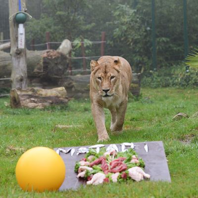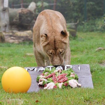 Eine feine Geburtstagstorte von der Tierpflegerin persönlich bereitet und Post und Ballgeschenk vom Löwenfanclub aus Leipzig. Im Zoo Leipzig lebte Matadi bis für ihn noch einmal im Löwenseniorenalter von 14 Jahren bei uns im Park ein passendes Weibchen gefunden wurde, unsere Zuri. Die beiden verstehen sich prächtig und so darf sie sich auch gleich über das herrliche Mal hermachen. Matadi wie immer ganz Gentleman.
