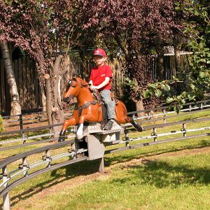 Reiten in allen Varianten ist etwas womit man Kinderaugen immer zum Strahlen bringen kann. Das wissen auch die Besitzer des Jaderparks. Die elektrische Pferdereitbahn ist mit detailtreuen Pferden bestückt, die auf Schienen eine lange Runde zurücklegen. Per Knopfdruck galoppiert das Pferdchen los. Das Gute daran: es wird nie bockig.